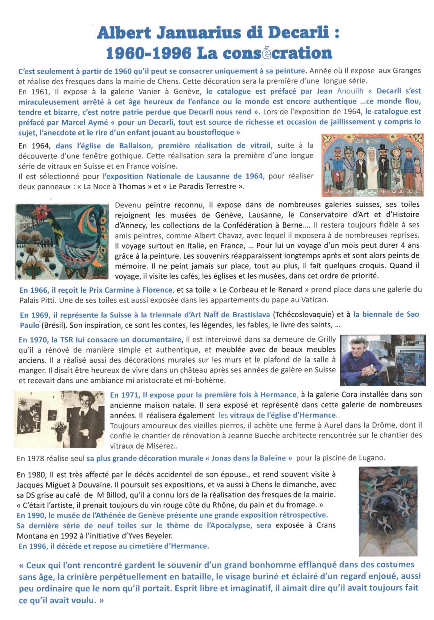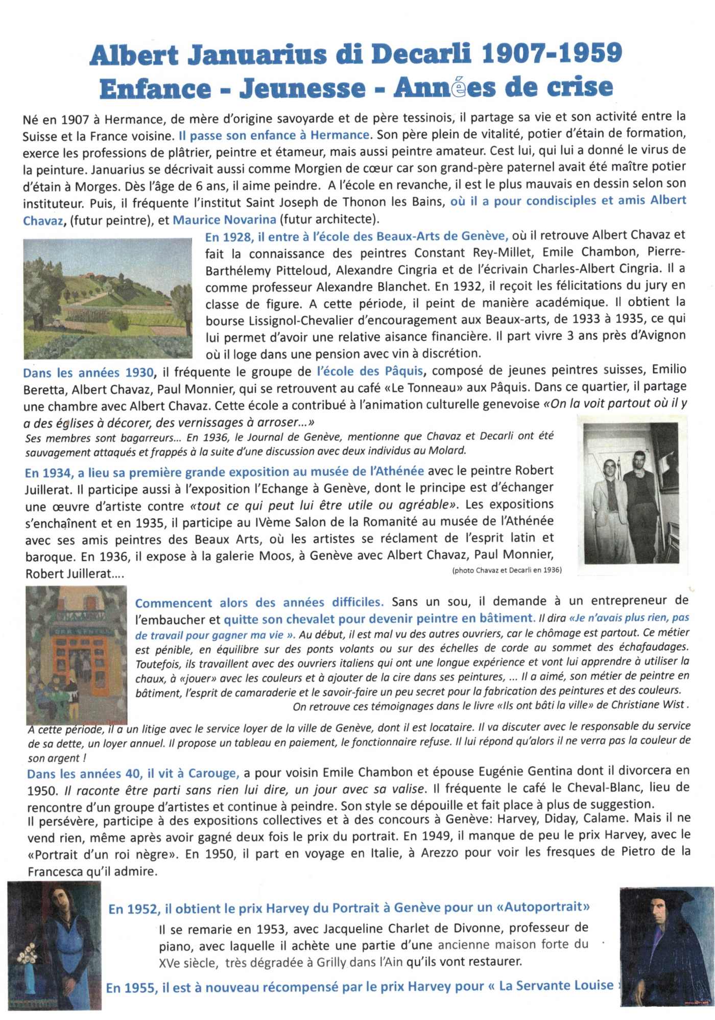 Hommage à l'Artiste Albert Januarius di Decarli (1907-1996)