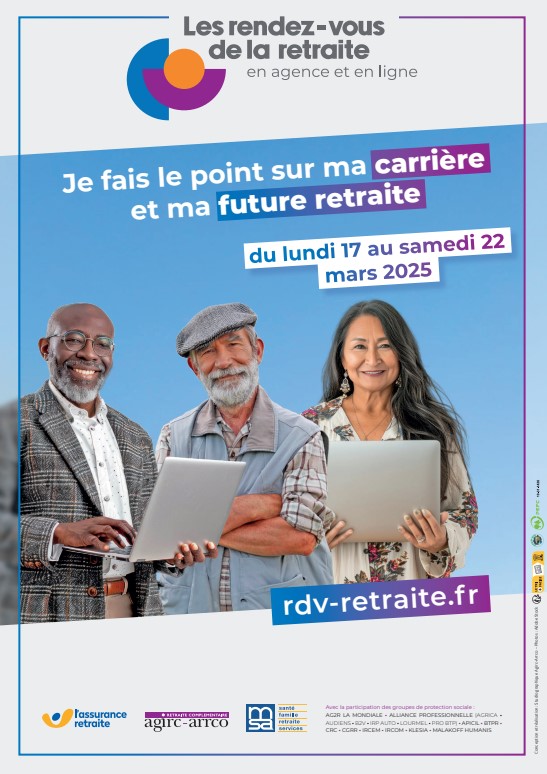 L’Assurance retraite, l’Agirc-Arrco et la Msa organisent du 17 au 22 mars 2025 les rendez-vous de la retraite.