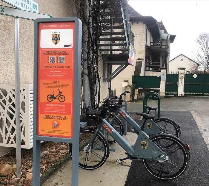 2 stations de vélos en libre-service sont disponibles à Grilly ;