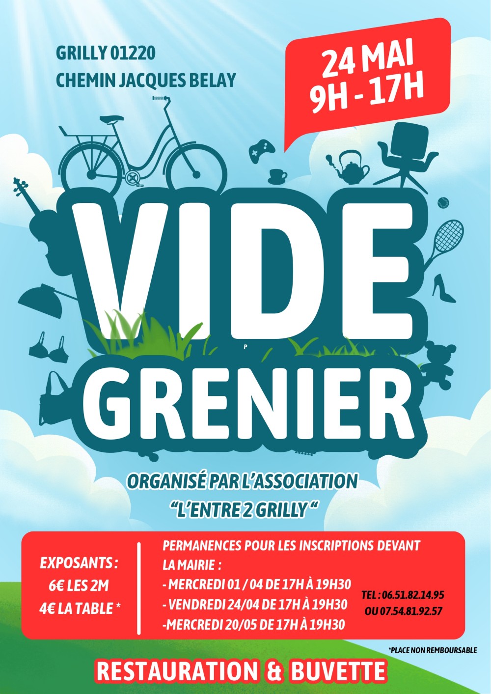 Vous avez du tri à faire ou vous voulez faire de bonne affaire ? Ça tombe bien, l’Entre2Grilly revient en ce début de saison avec son vide grenier qui aura lieu :